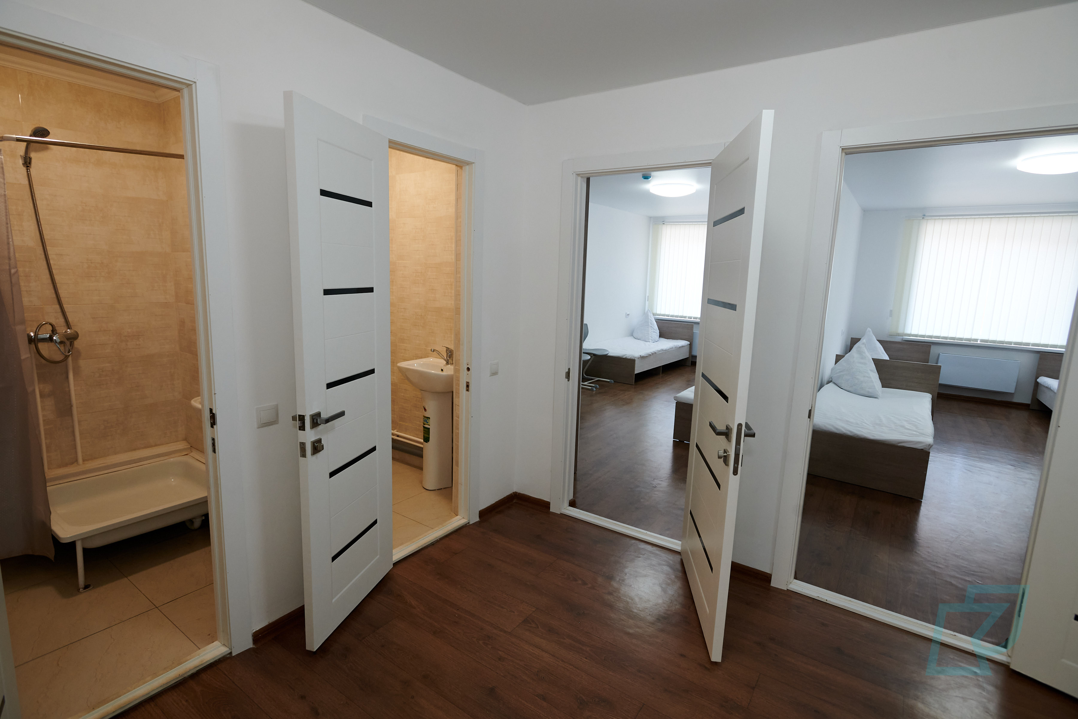 Біздің жатақханаларда бөлменің өлшеміне байланысты 2-ден 5-ке дейін адам тұра алады